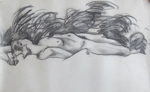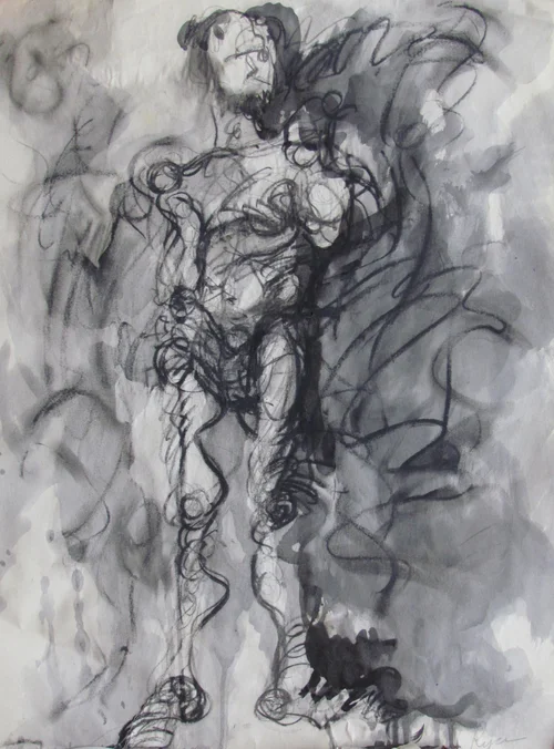 Multi media drawings made with pencil, charcoal, oil pastel, and watercolor.